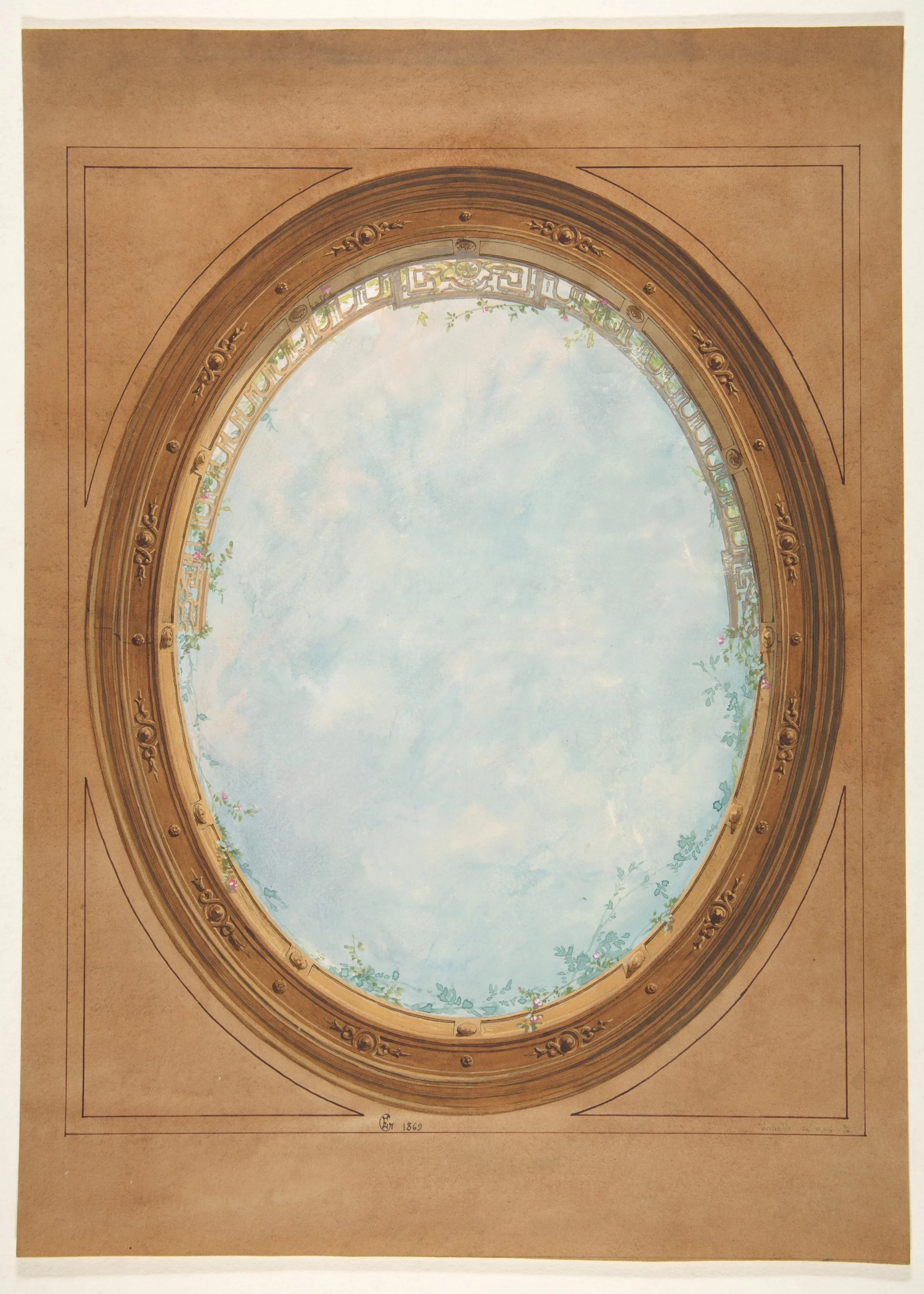 And in the 19th century, Jules-Edmond-Charles Lachaise took the concept skyward. His Design for a Ceiling with Trompe-l’Oeil Balustrade and Sky (1869) opened interiors to imagined heavens, blending architecture and dream.